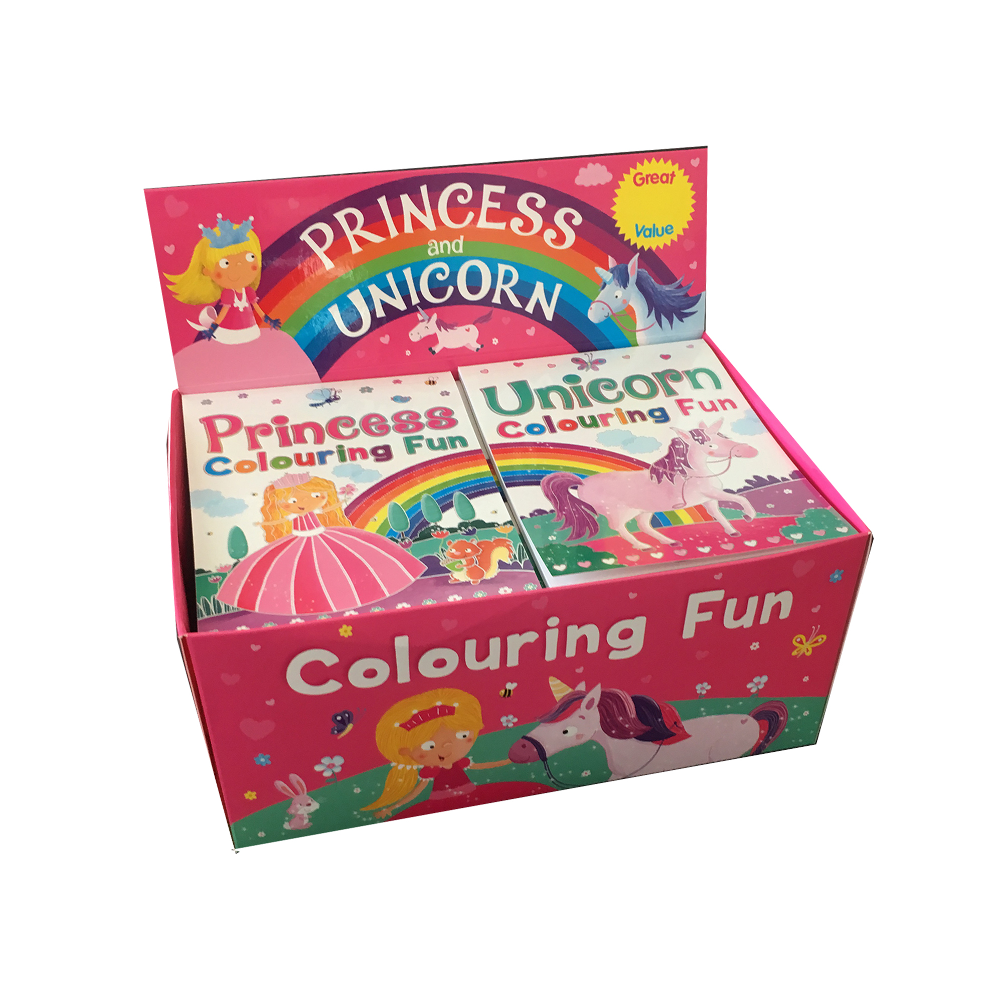 ▸ Princess and Unicorn colouring Books in a CDU 2 Titles of 18= 36 copies per CDU
